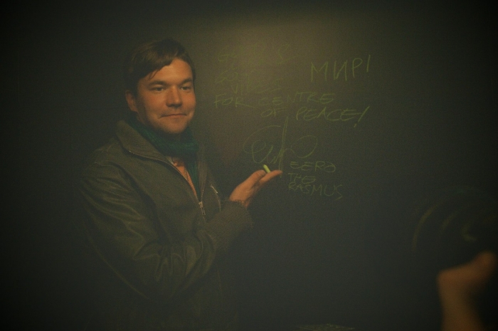 Новосибирские поклонники THE RASMUS на следующий день после громкого концерта в ДКЖ встретились с бас-гитаристом группы Ээро Хейноненом (Eero Heinonen) в более интимной обстановке, коллективно помедитировали и приняли участие в… воплощении "видения" своего кумира.