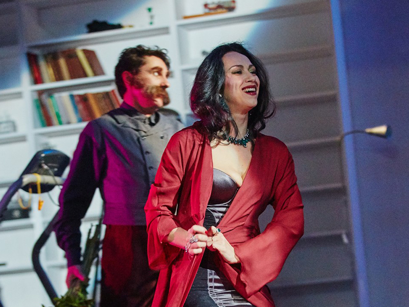 «Арабская ночь» 23 июня закроет сезон, а пока давайте перенесемся на большую сцену, на которой идет качественная, яркая, остроумная классика. Например, «Дядюшкин сон» по Достоевскому, где уездные тетки, каждая в меру собственной испорченности, доходящей до абсурда, устраивают образцово-показательные выступления в борьбе за богатого князя. Вскоре они объединяются в шайку против Марьи Александровны, но та ведет интригу со сватовством к дочери-бесприданнице изобретательно, артистично, виртуозно, как нерастраченная актриса, по которой плачет большая и малая сцены всех театров. Юная Зина – полная противоположность матушке. Оголенный нерв, натянутая струна, внешняя неприступность, внутренний пламень. Зина его со временем погасит – и примет законы общества. Правда, она обладает качествами, поднимающими ее над толпой. Например, чувством собственного достоинства. Ее финальный проход в эффектном синем костюме под руку со старикашкой-маразматиком прекрасен. Эта прямая осанка, эта высоко поднятая голова, этот холод во взгляде, ярко-красная помада на бескровном лице дорогого стоят.
