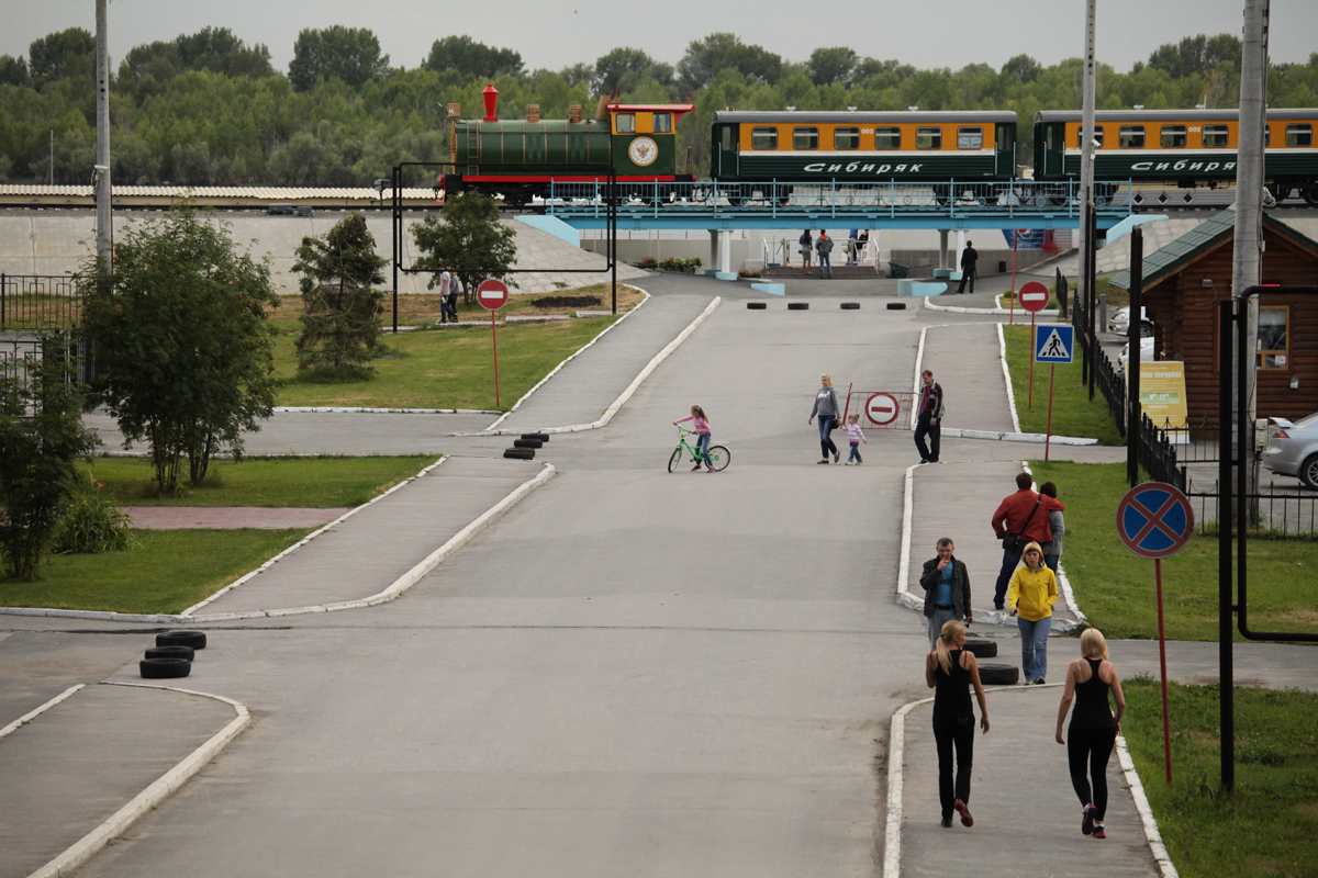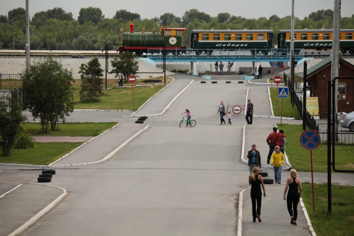 Гордость Заельцовского парка – детская железная дорога. Вот уже десять лет она восхищает гостей: выглядит, как игрушечная, но представлена в натуральную величину, и все здесь настоящее – и вокзал, и вагоны. Детская она не потому, что кататься на ней могут только дети, а потому, что дети на ней работают. Старшеклассники, проходящие подготовку в железнодорожном учебном центре, получают навыки рабчих специальностей - помощник машиниста локомотива, монтер пути, проводник, осмотрщик вагонов.