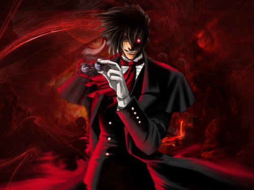 Итак, главный красавец одного из лучших вампирьих аниме - Алукард. Он же - Король Нечисти, Козырь Хеллсинга, Мусорщик Хэллсинга и Птица Гермеса. Он же Влад Цепеш, потому, что не надо быть гением, чтобы прочитать имя Алукард наоборот и получить всем знакомое слово – Дракула. Отлично написанный персонаж, спасибо Хирано Кота. Отлично нарисованный персонаж, спасибо ему же и Урата Ясунори. Мне лично трудно сказать, какая из экранизаций нравится больше – 2001 или 2006 года. Хотя, в обоих работах наш красавец остается циничной сволочью. Возраст такой, чего ж вы хотели.