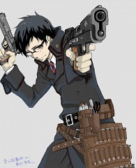 Один из новых любимцев - Юкио Окумура. Персонаж аниме "Синий экзорцист". Младший брат – близнец главного героя. Он не просто крут, а невероятно крут. И один из самых милых цундере, особенно когда дело касается его брата. Те, кто не знает, что такое "цундере", могут сходить в гугль. Но только не на википедию, потому, что про аниме она объясняет все на редкость коряво. Вернемся к Юкио - как он стреляет с двух рук, ммм... Если кто не заметил, то мне вообще нравятся персонажи, у которых по стволу в каждой руке. Любуемся.